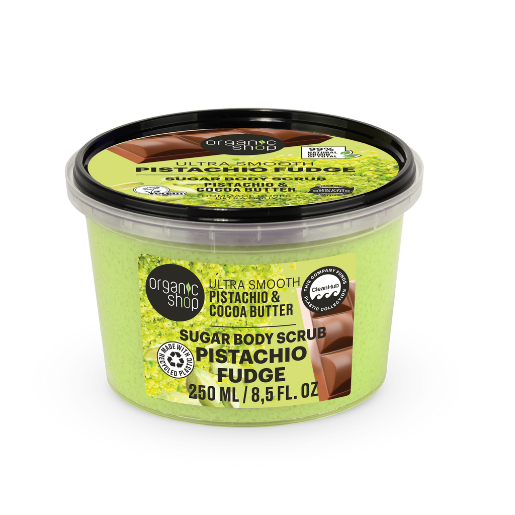 Con aceite de pistacho orgánico y manteca de cacao, este exfoliante te transporta a un mundo de dulces orientales, ¡perfecto para los amantes del chocolate de Dubái! El rico aroma a pistacho despierta los sentidos